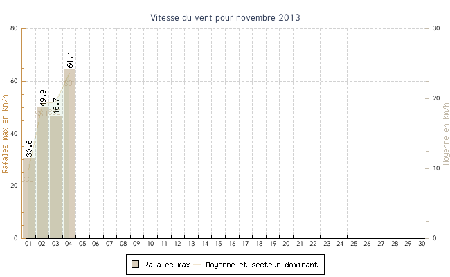 | min | max | moy | Vitesse (rafales) | Secteur | ||